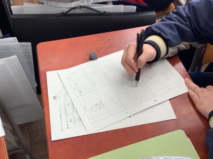 教科「日本語」の授業では、梅中のCM制作を行っています。事前に作成した絵コンテをもとに、本日は撮影を行いました。