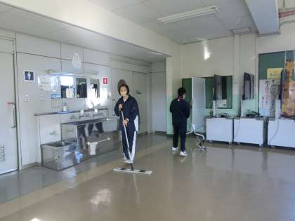 梅中JRCの今年初のボランティア活動は、床掃除から始まりました。