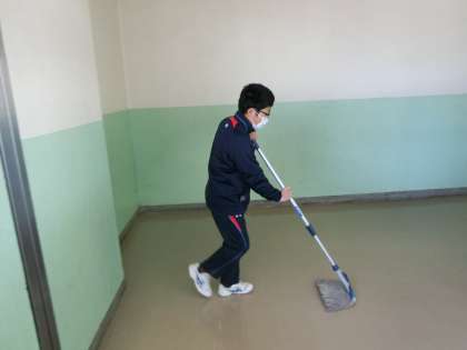 真っ黒になったモップとピカピカになった床を見て、達成感を味わいました。
