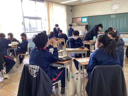 1年生は明日、校外学習を行います。今日は全体での前日指導と班での最終確認を行いました。自分たちが住んでいる地域をよりよく知るために、各班でテーマを決め、そのテーマに沿って見学場所とコースを設定しています。事後学習では校外学習で学んだことをポスターにまとめ、ポスターセッションでの発表を予定しています。しっかり学習してきましょう。