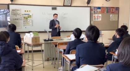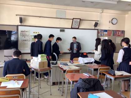 3年生の授業では、ALTの先生にThank You Card を作りました。授業の終わりにそれぞれのクラスをまわって、先生からメッセージが伝えられました。生徒からメッセージを受け取り、先生も感激していました。