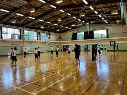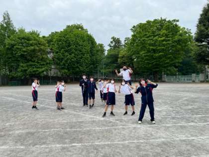 3年生を中心に応援団がダンスの練習をしています。教え方にも工夫を入れながら振り付けを確認しています。