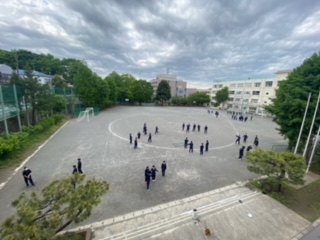 体育館と校庭に分かれて、各クラスごと、応援団による振り入れが始まりました。