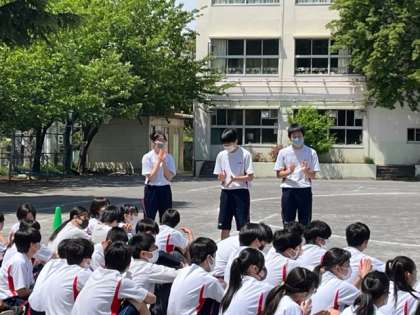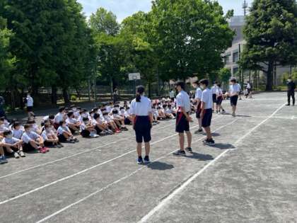 一回目の全校練習が行われました。入退場の確認とラジオ体操を確認しました。