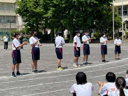 体育委員が中心となって進め、最後には団ごとに委員が意気込みを語りました。