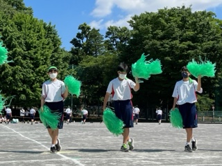 56時間目に、先日行えなかった種目を実施しました。応援ダンスでは、応援団が考えたダンスを団員の生徒全員が覚え、元気良く、そして楽しく踊っていました。見ていて梅中の伝統を感じました。
