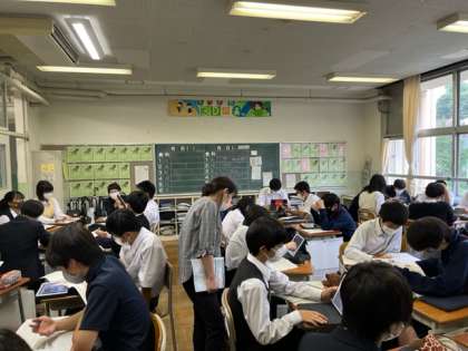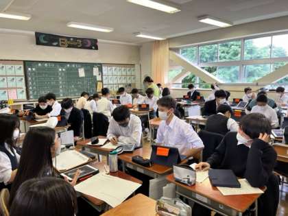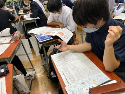 3年生は、高校の先生の授業に向けて下調べをしています。
