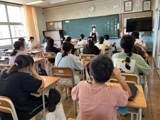 本日は、小学生が来校し、中学校の先生による授業体験が行われました。