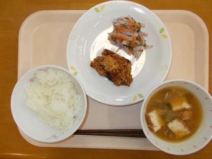 ごはん みそ汁 魚のごまフライ ゆかり和え