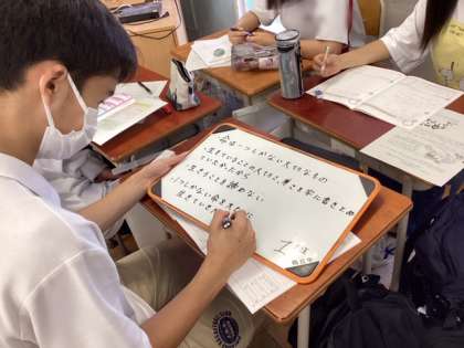 誉佳さんがこの言葉にどのような思いを込めたのかを考えたり、命についての思いを書きつづったりしました。