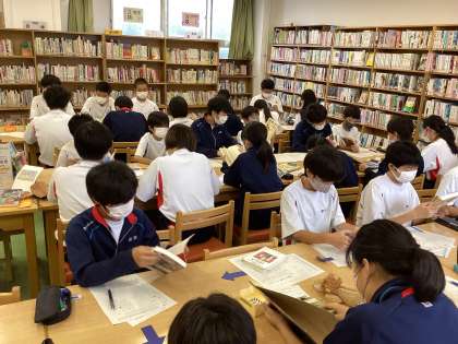 学校図書館司書の方にご協力いただき、2年生は「お試し読書」を行いました。
