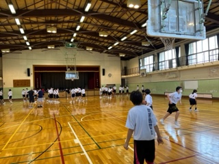 バスケ部では、新チームがスタートし、フォームチェックやドリブル練習を行っていました。