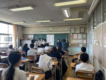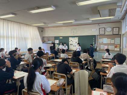 本日は、クラスの代表班が他のクラスをまわって河口湖移動教室事後学習の発表を行いました。皆、はきはきと前を見て立派な発表でした!クイズを入れたりした班もあり、盛り上がりつつも、真剣に友達の発表を聞いていました。