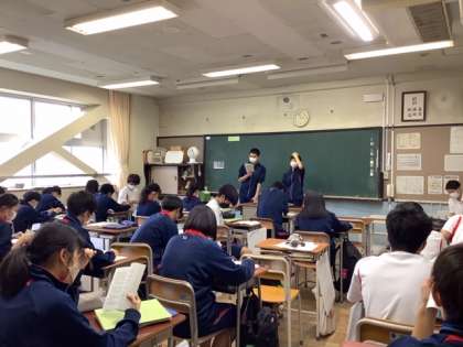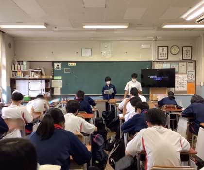 しおりの製本作業の後、学級委員が進行役を務め、内容の読み合わせをしました。