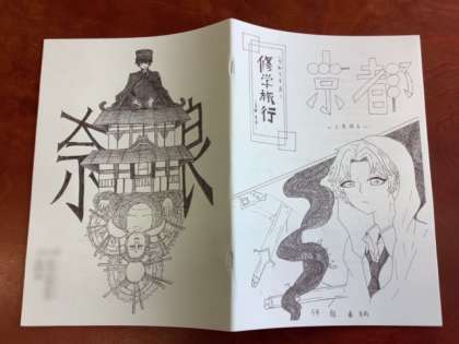 修学旅行実行委員が中心となって、各係からの伝達事項等をまとめ、しおりの原稿を作成してきました。有志生徒によるイラストも加わり、修学旅行のしおりが完成しました!