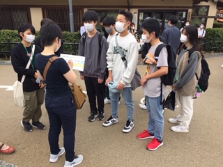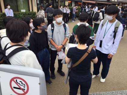 清水寺前のチェックポイント地点に続々と班が到着しています!