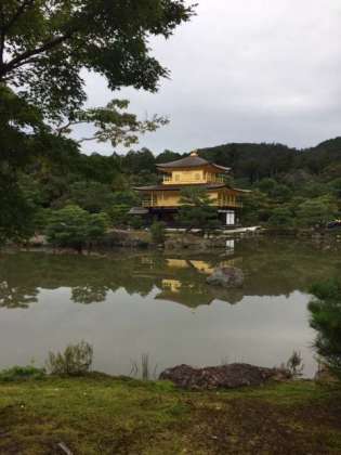雨の後で、風もなく、水面にきれいに金閣寺が浮かんでいます!
