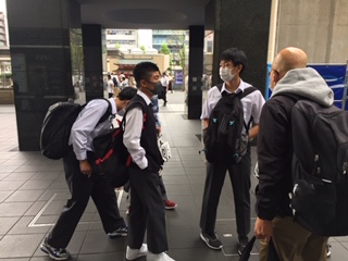 タクシー行動を終え、続々と生徒たちが集合しています。