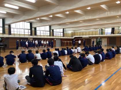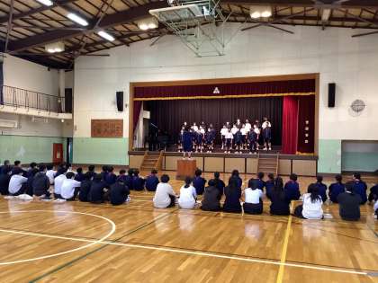合唱コンクールまであと少しです。本日は各クラスごとに2、3年生と合同で練習を行いました。先輩たちの歌声を聴き、またアドバイスももらい、決意を新たにしました。先輩たちのようにすばらしい合唱ができるようにがんばります!
