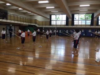 国士舘大学大学院の八木聖真先生をお招きして、一年生の女子が剣道の授業を行なっています。