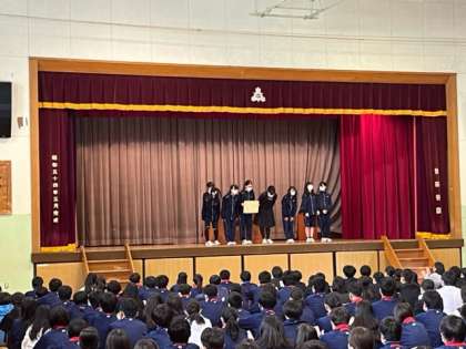 11月の全校朝礼が行われました。校長先生の講話に続き、先日行われた世田谷区英語スピーチコンテストの入賞者松本くんには実際のスピーチを披露してもらいました。