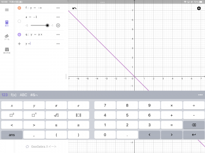 配られているiPadのジオジェブラというアプリで、関数のグラフを書いてみました。