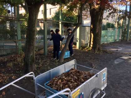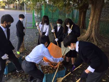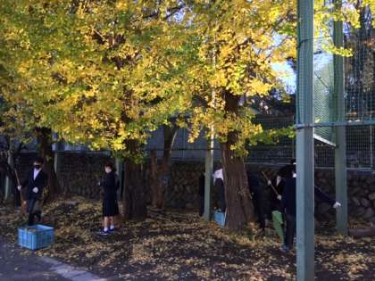 本日から美化委員会主催の落ち葉掃き活動がスタートしました。早朝の校庭に生徒たちが集い、楽しい雰囲気で活動していました。溜まっていた落ち葉がすっかり綺麗になりました!