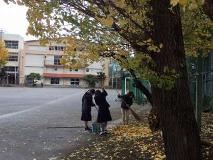 12/2は一段と寒い朝でしたが、たくさんの生徒が参加してくれました。ワールドカップでの日本代表の勝利を喜ぶ声があちこちで聞かれ、心はぽかぽか!落ち葉掃きに精を出していました!