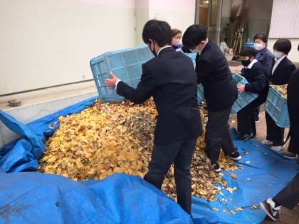 11月末から美化委員会主催の落ち葉掃き活動が始まりました。毎週金曜日は、美化委員生徒とボランティアの生徒で早朝から落ち葉掃きをしています。