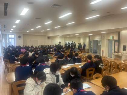 3月6日(月)の1時間目、3年生は翌日の校外学習の前日指導を行いました。