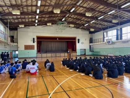梅丘中学校の委員会や部活動紹介など、生徒主体となり、一年生に披露していました。