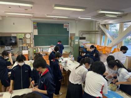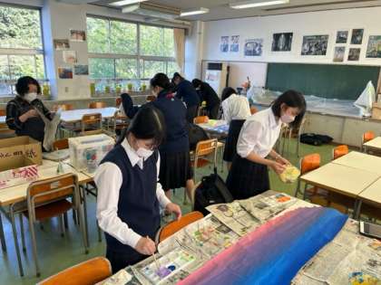 ?学校ではクラスで決めた、クラス目標を模造紙に描き表す作業が行われています。