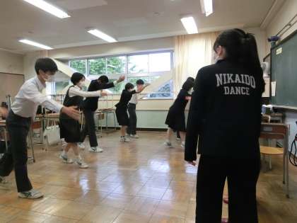 本日、各組の応援団は日本女子体育大学附属二階堂高等学校ダンス部の部員の方々からダンス指導を受けました。できているところまで披露し、アドバイスを受けて改良していきます。今後3年生は、1,2年生に指導し、全学年がそろったダンスを5月13日にまたダンス部の方に見てもらいます。どんなダンスに仕上がるか楽しみです。