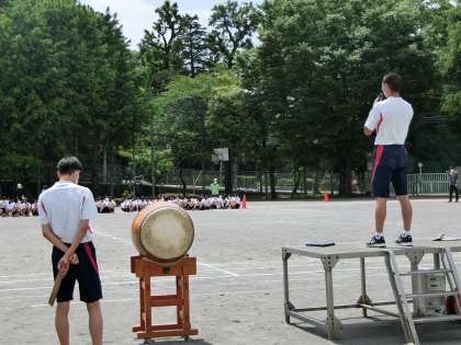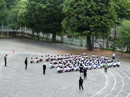 第2回目の全校練習は、「時間を有効に使い、全員が指示を聞き、理解して人任せな動きをしないようにする」というポイントがありました。練習の流れや目的を実行委員長より確認し、練習が始まりました。大繩では、各団ともに最後まであきらめず、一生懸命に跳んでいました。特に3年生の練習から全力で取り組む姿は素晴らしかったです。最後は団ごとに集まり、3年生から大繩の指導がありました。