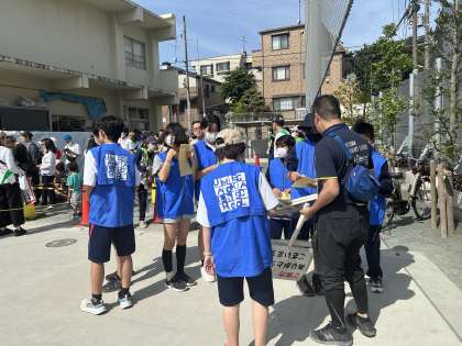 5月27日(土)の代田小学校、松原小学校の運動会に梅丘中学校の生徒がボランティアとして活動しました。受付で来賓や保護者の案内、小学生の管理としてトイレ引率やミストを噴霧器でまいたり、用具係、アナウンス、救護など様々な役割を果たしてくれました。中学生として小学校で活動することは、キャリア教育にもつながったことと思います。
