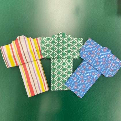先週は日本語の授業で、折り紙の浴衣を作りました。