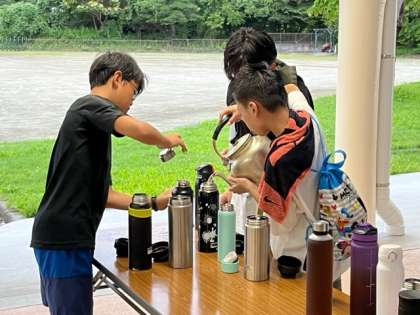 水筒係、食事係、レク係と、それぞれに協力し合いながら頑張っています。
