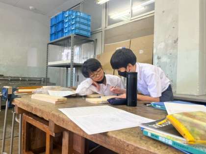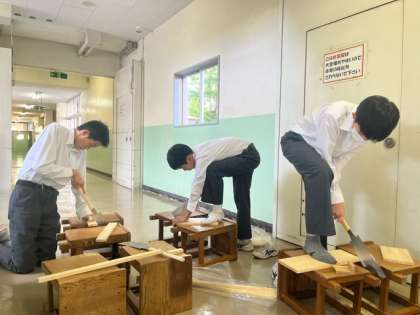 技術の授業では木工作業が始まりました。丁寧に、怪我に気をつけてとりくんでいます。