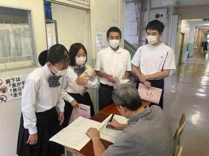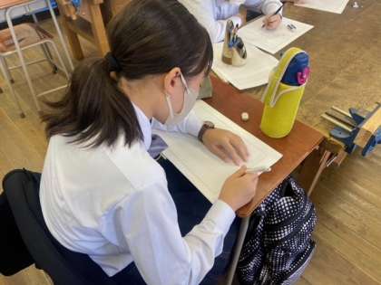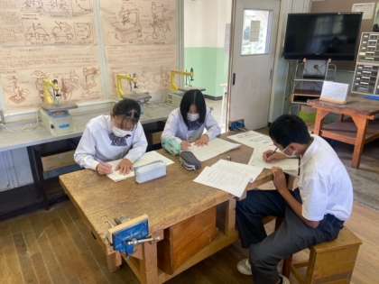 少し早めに終わった班は、到着チェック開始の時刻まで、しおりの記入を行なっていました。