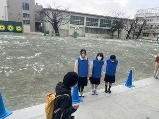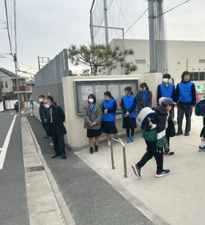 松原小学校にて、合同のあいさつ運動をおこないました。学び舎の取組みで、生徒会役員が企画しました。