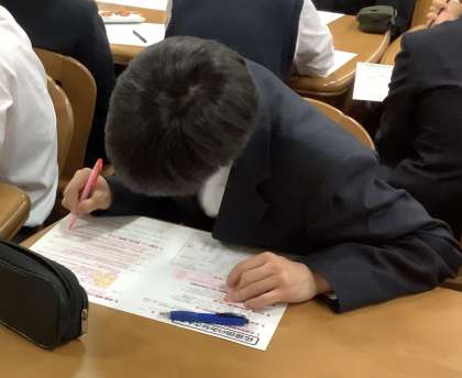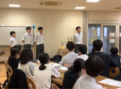 各クラスの体育祭応援団が集まり、応援団としての活動について確認しました。