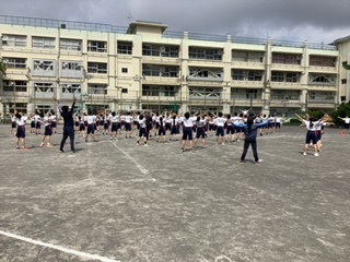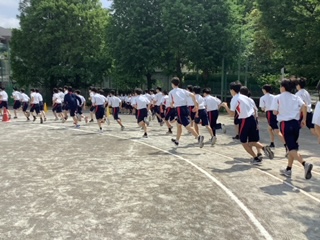 第1回体育祭学年練習を行いました。ラジオ体操、100mの走順の確認、全員リレーや大縄跳びなどの練習を行いました。