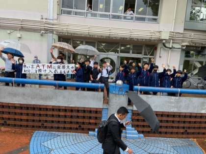 先生方、先輩方が雨の中、お見送りしてくれました。