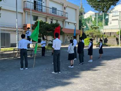 放課後、体育委員、応援団、生徒会役員の生徒たちが集まり、体育祭の開会式、閉会式のリハーサルを行いました。