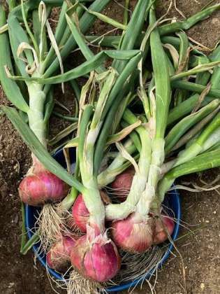そら豆、紫玉ねぎを収穫し、新たに、さつまいもとレタスの苗を植えました!