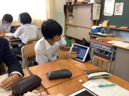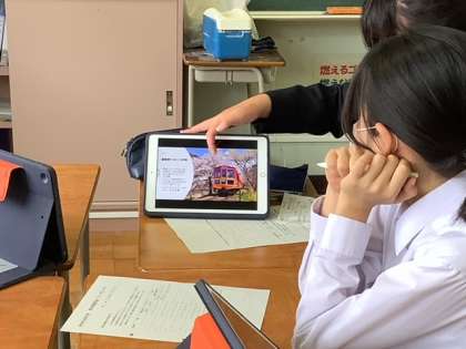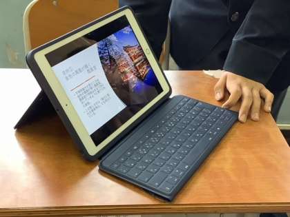 京都・奈良の寺社、観光名所をクラス内で分担し、調べ学習を行っています。担当する場所の歴史や見どころを工夫してスライドにまとめました。