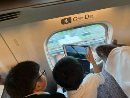 曇り空で富士山は残念ながらはっきり見えませんでした。新富士駅の写真を撮った生徒が写真を見せてくれました!