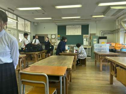 2年生の職場体験3日目が終わり、学校に終了報告に生徒が集まっています。