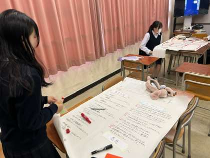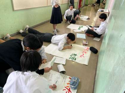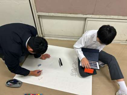 2年生は職場体験の発表に向けて各事業所ごとに作業を進めています。