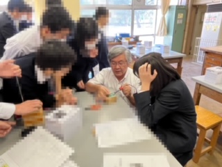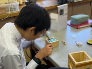 ?技術科の授業では、ウッディキューブラジオの製作をしていました。はんだ付けの仕方を確認したり、互いに教えあったりしながら進めていました!